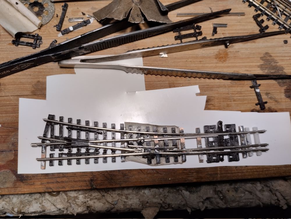 Пришлось делать переходной рельс с высоты 2мм (код 80) на код 55 (1,5мм) в Z. Так как у меня остался один остряк, то теперь надо думать как к нему сделать привод.