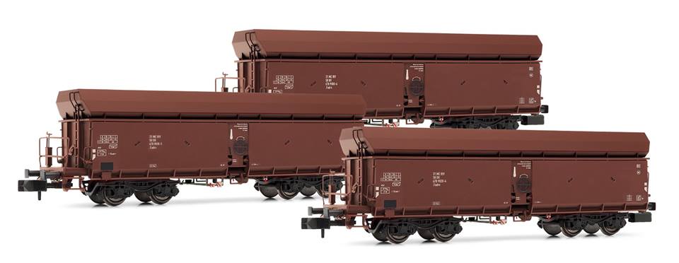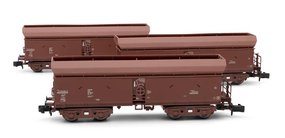 HN6366 - 3-teiliges Set Selbstentladewagen, Fadrrs der DR, in brauner Lackierung