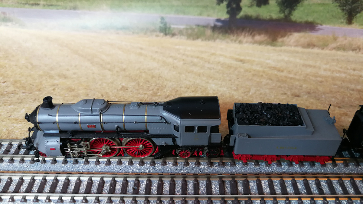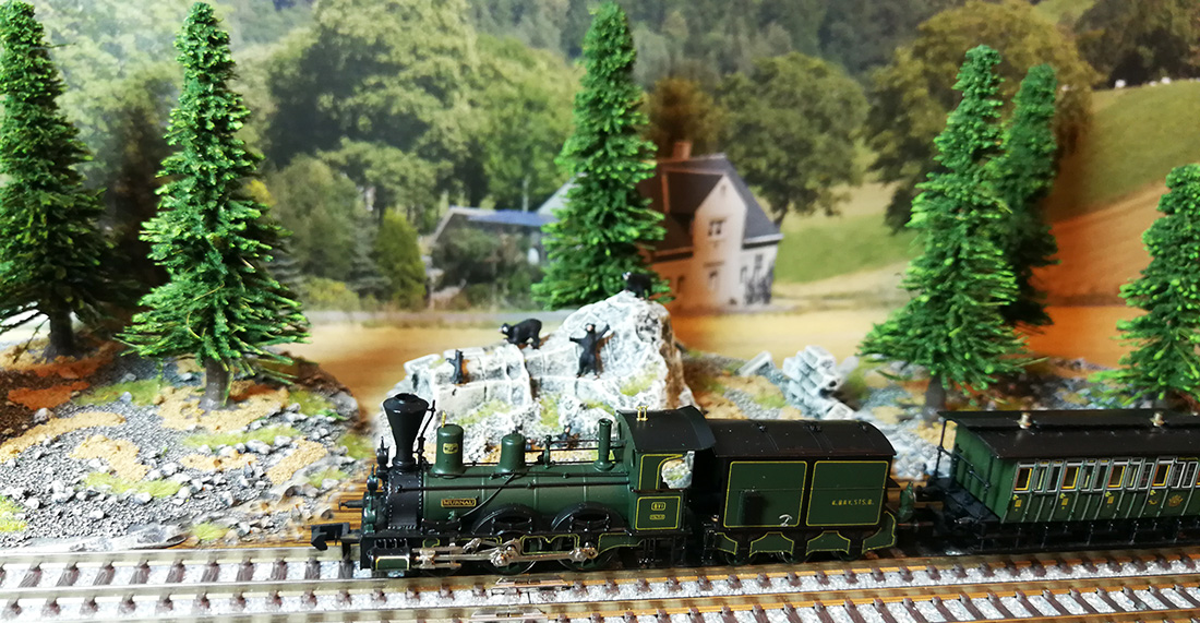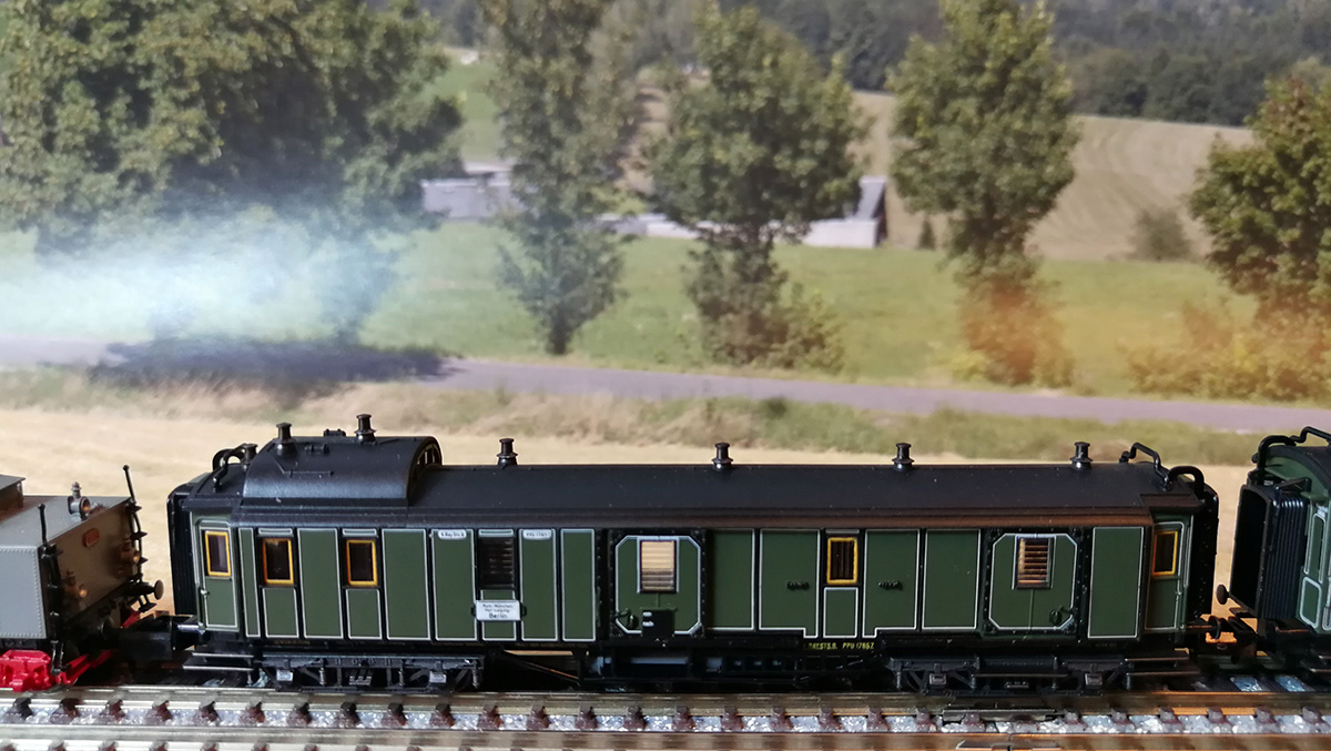 Bavaria/Lemke LC2566Там три вагона в наборе, третий - длинный 4-х осный вагон для пропитки шпал (цистерна).Я использовал только два вагона. Длинный стоит на станции.