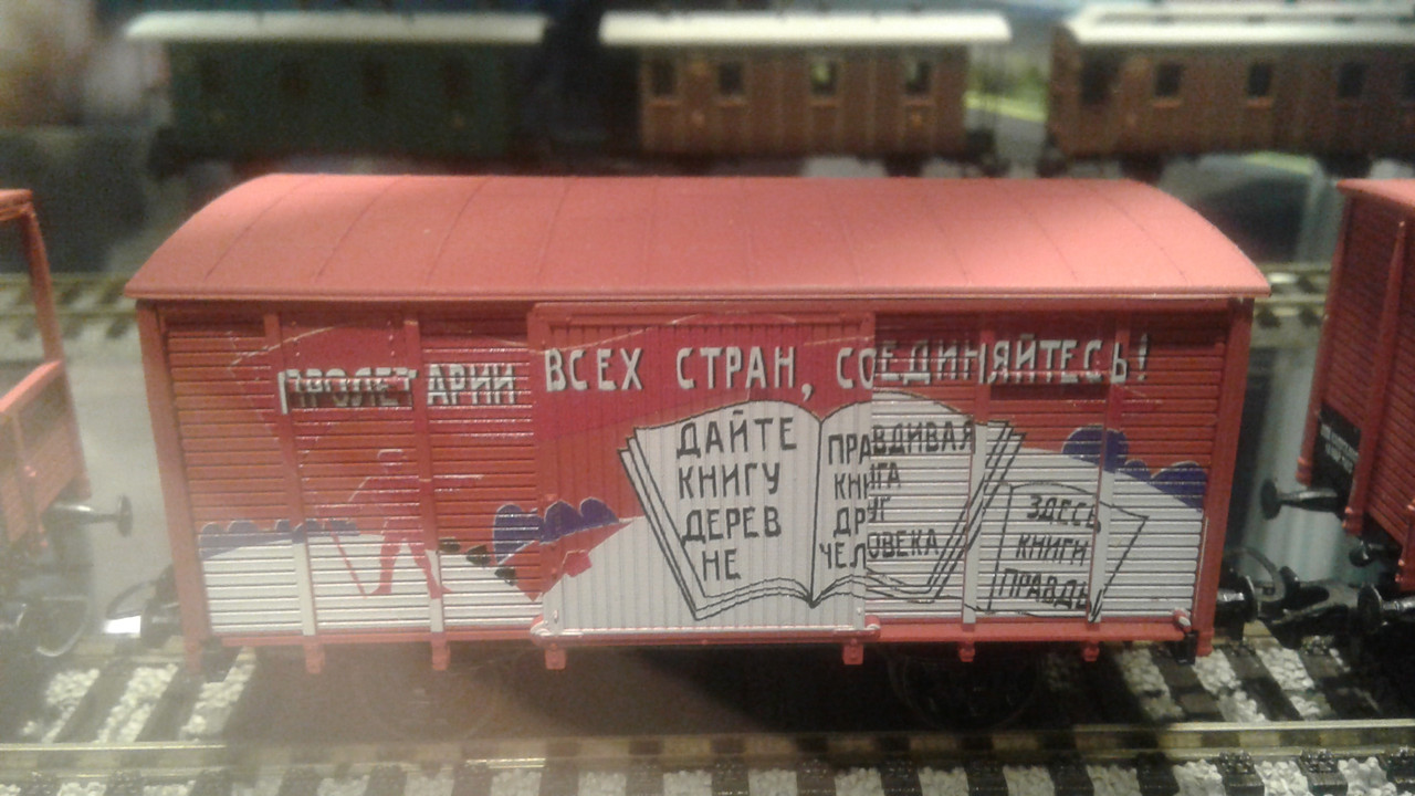 уточню пожалуй, видно я не совсем конкретно выразился - ограничение по отечественной тематике касается выставки, помещения в витрины. Макеты явление редкое и малочисленное, поэтому, наверное, принимаются любые на "УРА". Катали ребята из "Модуль-Мастер", макет принадлежит им, я не знаю какое отношение они имеют к ВОЛЖД, и они катают все, что захотят или имеют сами.