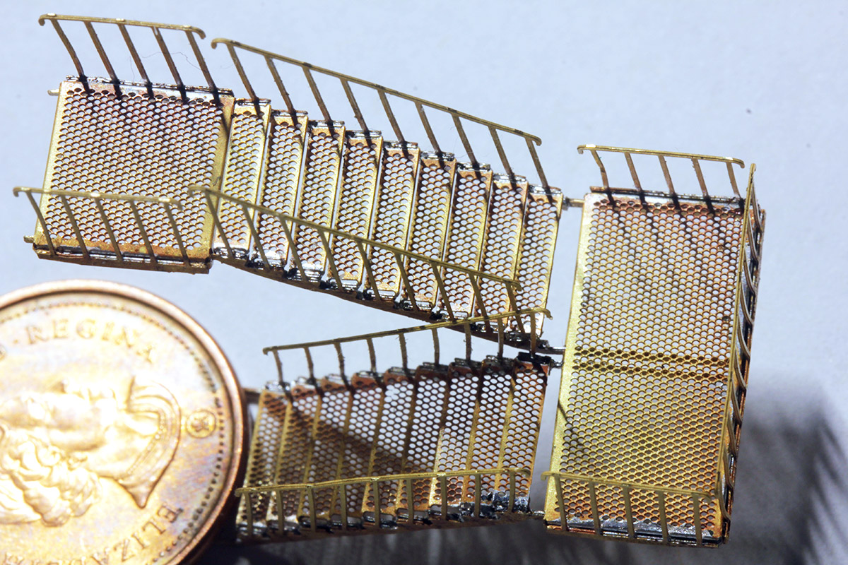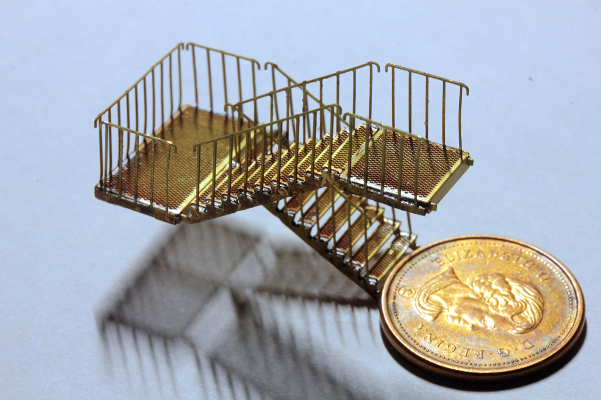 Если планируется их использовать для платформы, то надо иметь в виду, что они узкие. К платформе лучше ставить сдвоенные. Перила легко откусываются до сборки и две лестницы можно легко спаять.