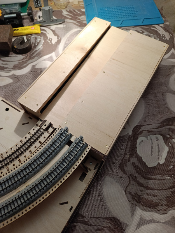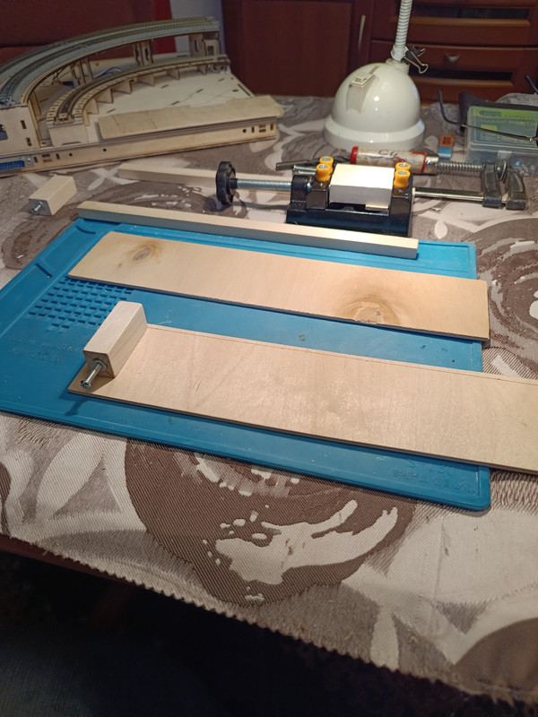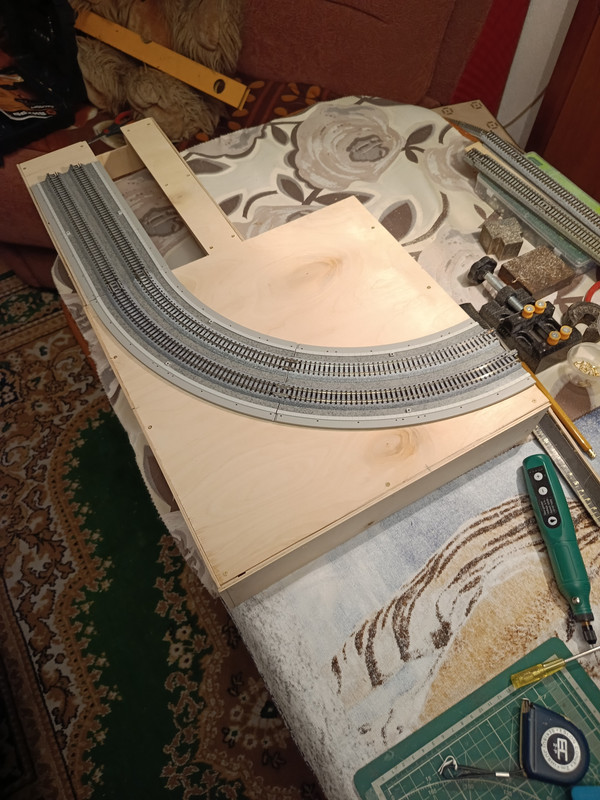 К сожалению, наш уважаемый Мастер, вынужден полностью отдаться своей основной работе и другим очень важным делам, поэтому у меня в наличии пока только три модуля. Благодаря тому, что Мастер мне, еще весной, предоставил достаточное количество специальных опор, которые позволяют заменить ими недостающие модули, могу собрать частично, первоначально задуманную путевую схему, но только без спуска на пути сортировочной станции.