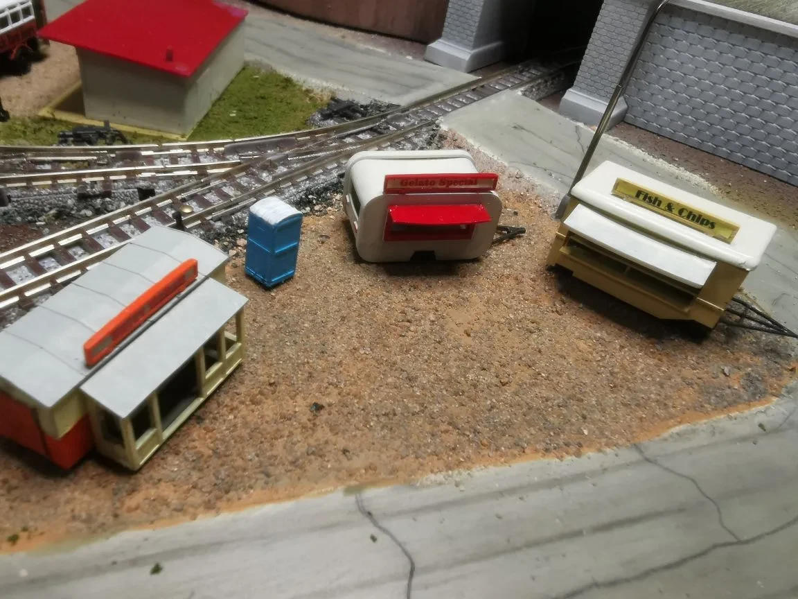 Я понимаю Ваше желание разместить максимум сцен на макете, но тогда это будет сборная солянка - отделяйте сцены друг от друга деревьями, лугами, кустами - они работают как рамки у картины.
